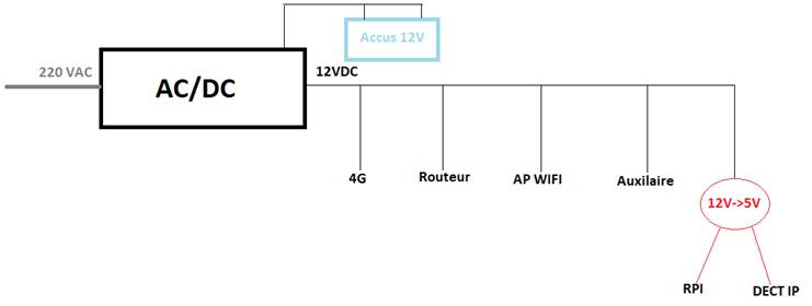 d’alimentations 12V sont récupérés de vieilles alimentations de routeurs, …